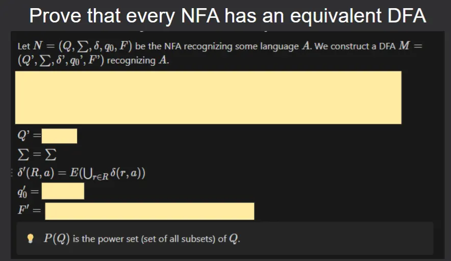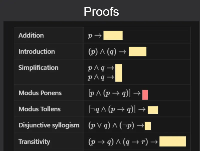 - Proofs/Algorithms: Rather than trying to learn an entire algorithm in a single flashcard, prefer smaller flashcards where you can learn different parts of an algorithm. The
